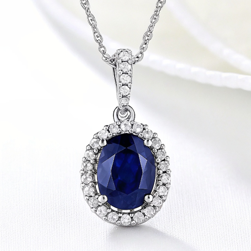 Timeless beauty meets modern sophistication in the Midnight Elegance Sapphire Halo Pendant Necklace.